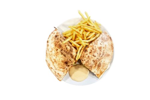 1 viande au choix, base sauce tomate ou sauce au choix, mozzarella, salade, oignons.