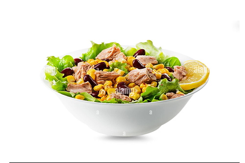 Salade, tomate, olives, thon, sauce pesto.